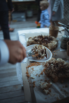 The small wedding was all about the personal finishing touches, with the bunting handmade by Eloise, Leon and his groomsman playing Eloise down the aisle, and the pumpkin pie and pecan pie taking the official place of the wedding cake to recognise Leon's American roots.